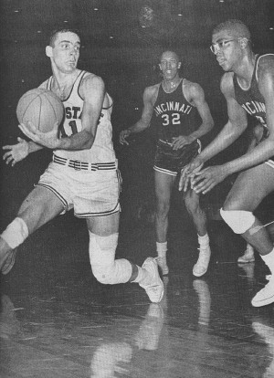 In 1961, Cincinnati upset Ohio State for the NCAA championship in Kansas City. The teams had not met since 1922 and there was intense rivalry between the representatives of the Buckeye State. Ohio State, featuring a devastating fast break and a 31-game winning streak, was led by two great all-American players, Jerry Lucas and John Havlicek. The Bearcats showed mental control by playing a point-by-point, ball-control game and with the score tied at 61-61 and a minute left to play, stalled out the last minute of play for a one-shot play. The shot was unsuccessful but Cincinnati won in overtime, 70-65. The two teams played a repeat performance in 1962 and again Cincinnati won, 71-59.