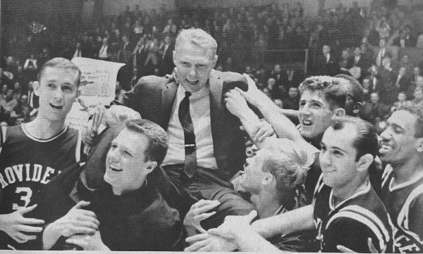 | EMOTION, which author Rupp finds key to basketball success, is mirrored on the faces of happy Providence players, coach after 1963 NIT win. |