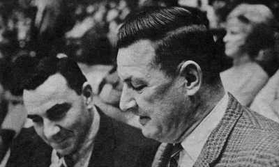 | Wallace Jones, attending a game in Lexington with Humzey Yessin, left, UK golf coach who was student manager for the "Fabulous Five" team. Jones is an alcoholic-beverage-control official. |