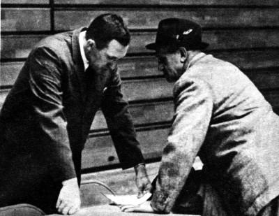 | POSTMORTEM after a Western defeat finds Ed comforting his successor, Johnny Oldham, left. |