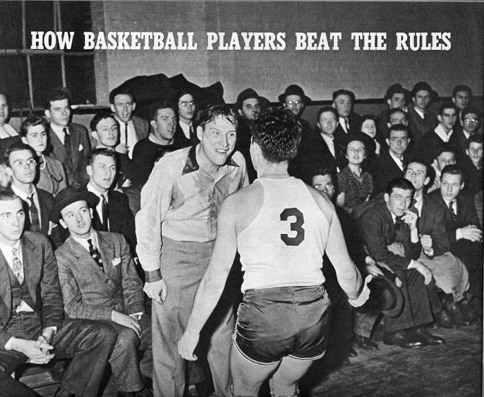 This is just one of the rule beating tricks used by basketball players to get the little advantages that often mean victory in a close game. These tricks are not confined to any team or section and, of course, they are not taught to the boys; the lads pick them up from each other.