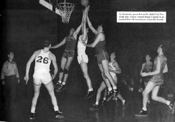 | As Kentucky poured it on St. John's in New York this winter, Coach Rupp's squad is so loaded that All-Americans warm the bench. |