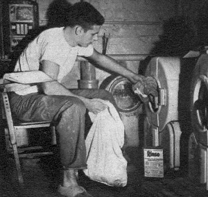 Typical of the gang in modesty is stubby-haired Ralph Beard, flashiest of the lot and the most publicized. He takes a lot of ribbing from teammates and his coach about his clippings, of which he has collected great boxfuls - thanks in part to New York writers who went into great ecstasies and dusted off choice adjectives after rapid Ralph in a sensational performance tallied 23 points against the Phillips Oilers in the finals of the Olympic trials (compared with 20 by seven-foot Bob Kurland).