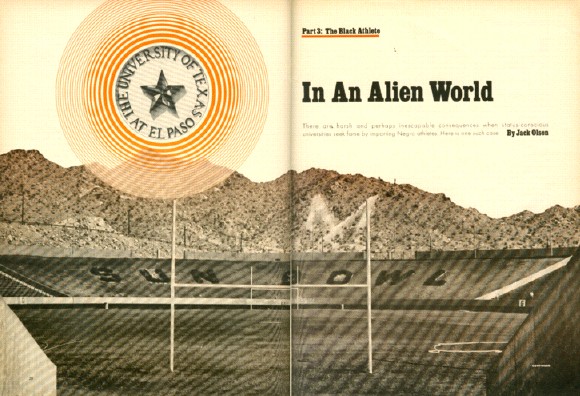 Harry Edwards and his staff of bereted, beaded and militant assistants swarmed all over UTEP the weekend after Dr. Martin Luther King's assassination, and one of them draped himself across a chair in the Sheraton Motor Inn on Mesa Street and intoned carefully: "What it gets down to is sex, the same old story. Isn't it funny that whenever you make a thorough study of the problems of white and black together, it always comes out s-e-x? What a problem it must give the recruiter from this school. They're committed to using black athletes to get their name before the public, right? So this poor recruiter has to go to the Bronx and Harlem and convince Negroes that of all the places they could go. El Paso is the best. Now what is the first thing that enters the kid's mind, any kid's mind? Are there any girls? Well, what the hell is the poor recruiter going to say? That there are hardly any black women in El Paso? That there are only a few black girls at the university? So he has to fudge around, tell a few lies. He may even hint that the atmosphere is pretty relaxed down there in the Southwest, and nobody would mind if he dated a white girl. After all, that's where America begins, out there in Marlboro Country. So the kid signs his letter of intent, and then he's hooked. He gets on the campus and he finds out that if he dates a white girl it's his ass."
