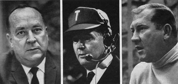 | Athletic Director McCarty (left) feels Negroes like him in spite of his pronunciation problem. Football Coach Dobbs (center) was faced with Negro protest meeting, but changed no policies. Basketball Coach Haskins (right) keeps a demanding eye on players - and whose hands they hold. |