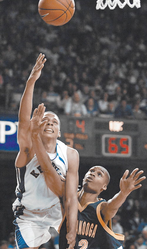 Derrick Jasper attempts a shot while defended by Chattanooga's Bernard Lowndes